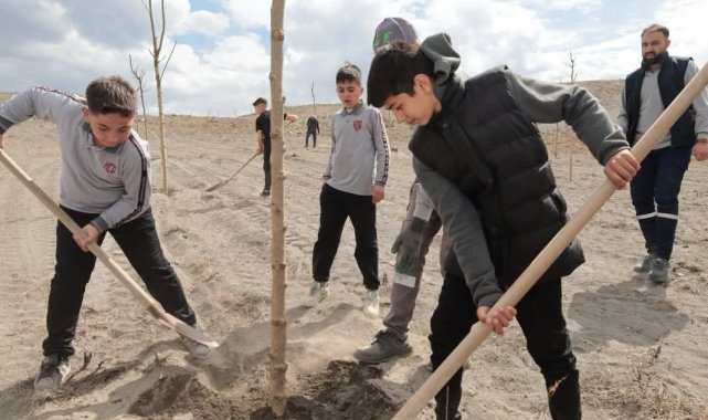 Konya'nın Karapınar ilçesinde ağaçlandırma çalışmaları hız kesmeden devam ediyor.