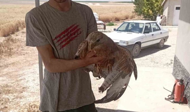 Konya'nın Karapınar ilçesinde, yaralı halde bulunan şahin koruma altına alındı.