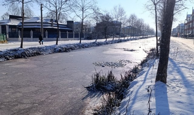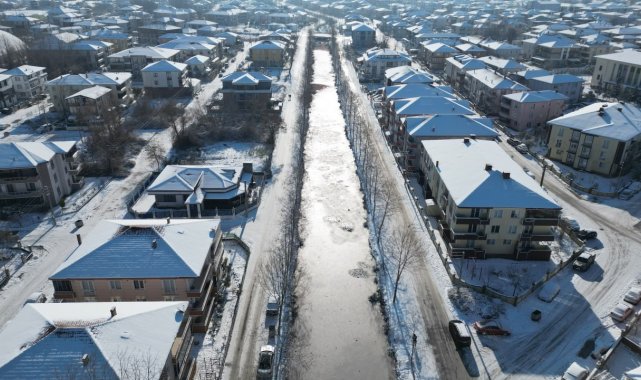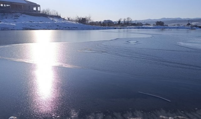 Karasu'da göl ve ilçe merkezinden geçen kanal dondu