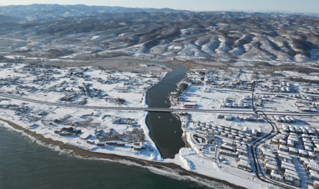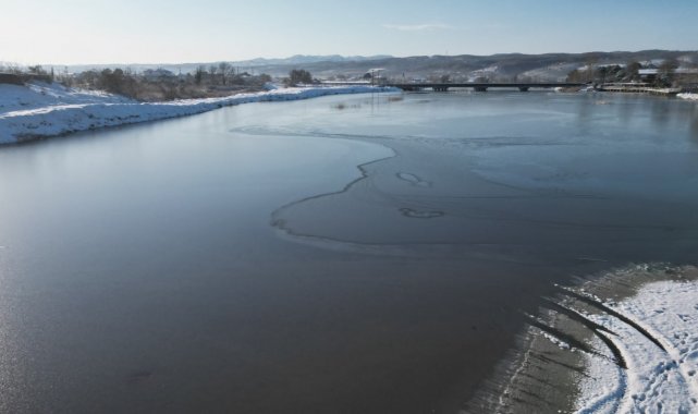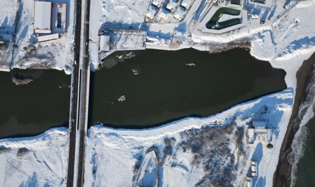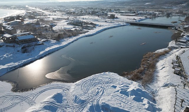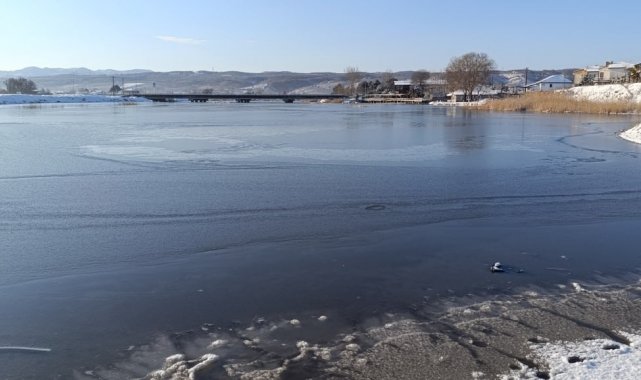 Sakarya'nın Karasu ilçesinde sabah saatlerinde dereceler-7'yi gösterdi. Karadeniz'e sıfır konumda bulunan Küçükboğaz Gölü ile gölü Sakarya Nehri'ne bağlayan kanal dondu. Gölün ve kanalın donmuş hali havadan görüntülendi.