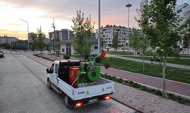Park ve Bahçeler Müdürlüğü ekipleri ise parklar ve yeşil alanlardaki ağaçlarda yaprak biti, haşere, mantar ve çeşitli zararlılara karşı ilaçlama çalışmalarını sürdürüyor. Doğanın dengesini koruyan ve insan sağlığına zarar vermeyen kimyasalların tercih edildiği uygulamalar çerçevesinde, karasinek ve sivrisineklere karşı mücadele kasım ayına kadar hava şartlarına bağlı olarak devam edecek.