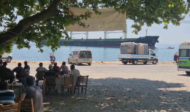 Karaya oturan gemiyi köy kahvesinden izliyorlar