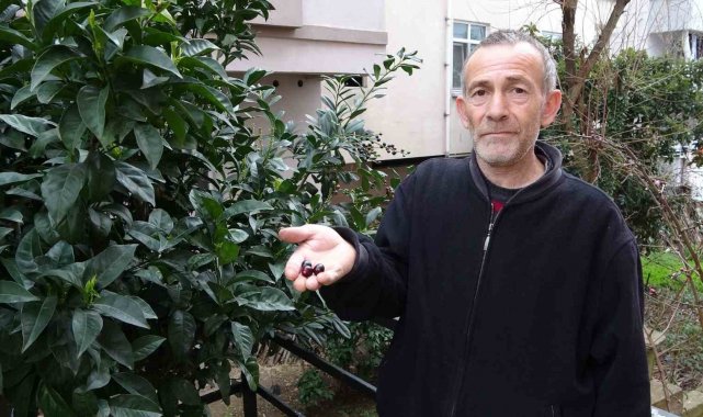 Ordu'nun Altınordu ilçesinde mevsiminden 3 ay önce meyve veren karayemiş ağacı şaşırttı.