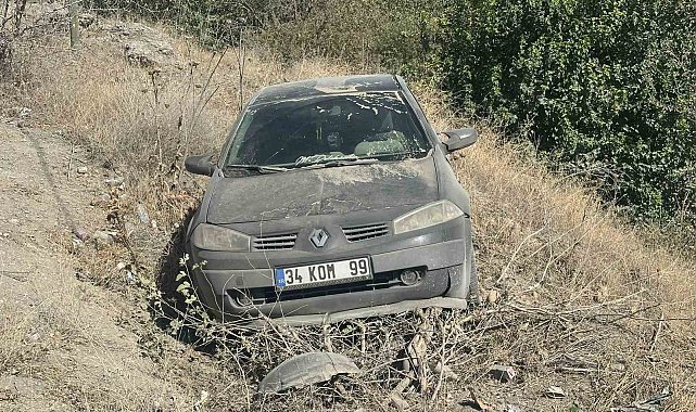 Adıyaman'da, karayoluna dökülen mıcırdan dolayı kontrolden çıkan otomobil şarampole girdi.
