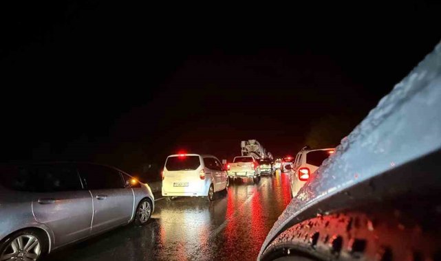 Karayoluna düşen taşlar ulaşımda aksamalara neden oldu