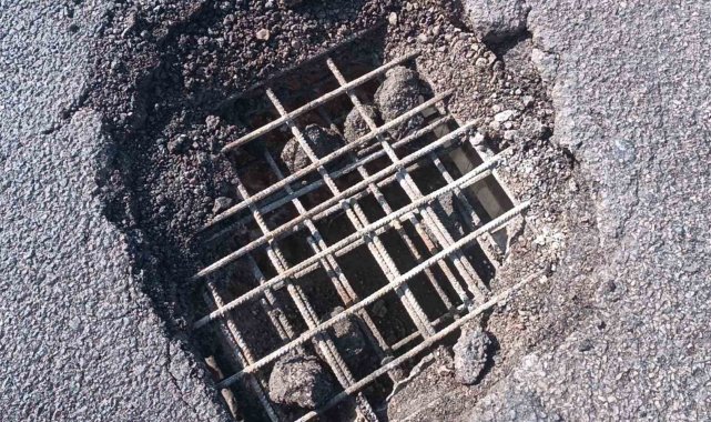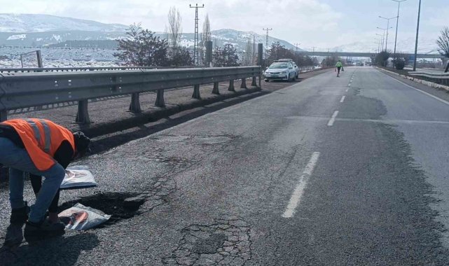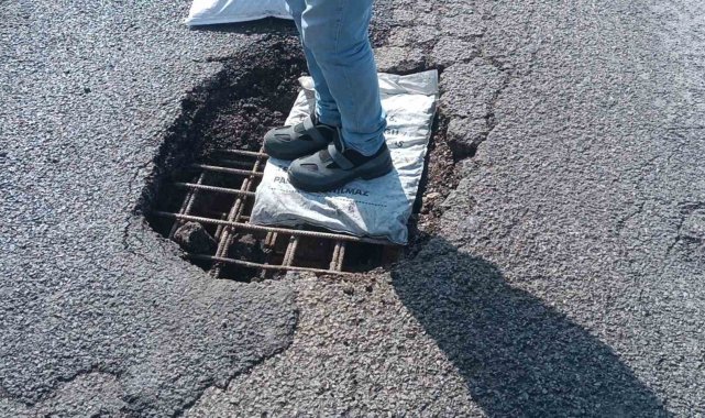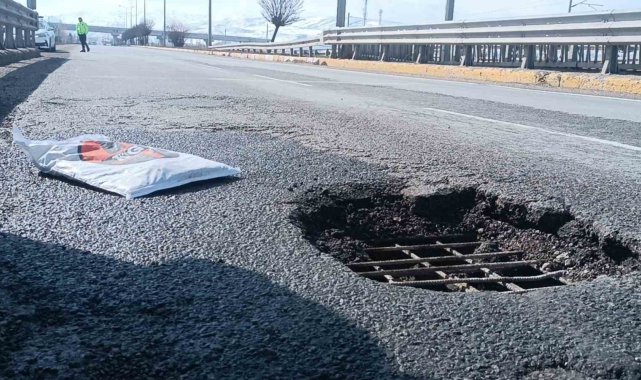 Karayolunda oluşan çöküntüler tehlike saçıyor