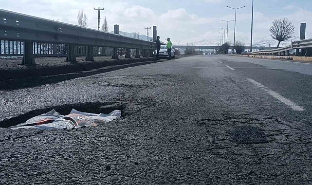 Sivas-Kayseri karayolu Kızılırmak Köprüsü üzerinde oluşan çöküntüler sürücüler için tehlike oluşturuyor.