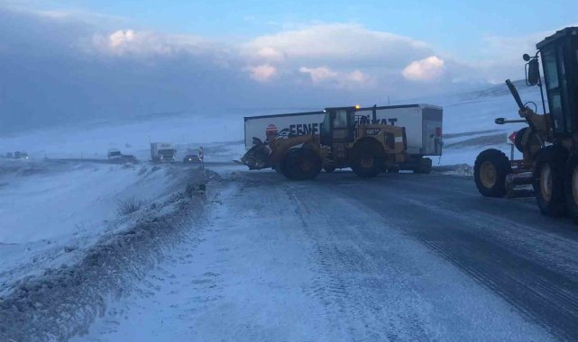 Karda kayan tır yolu ulaşımı kapattı
