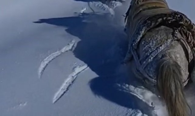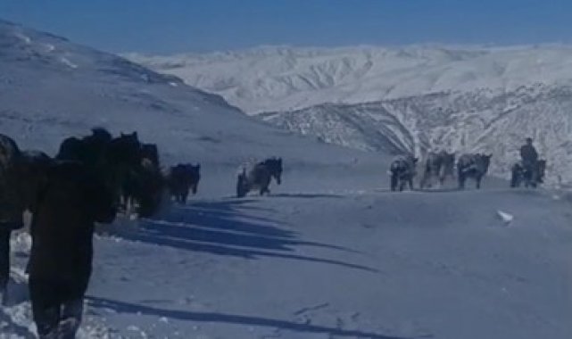 Karda mahsur kalan at ve katırlar güvenlik korucuları tarafından kurtarıldı