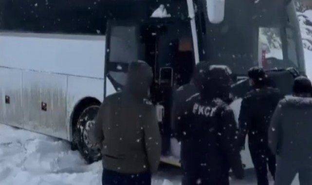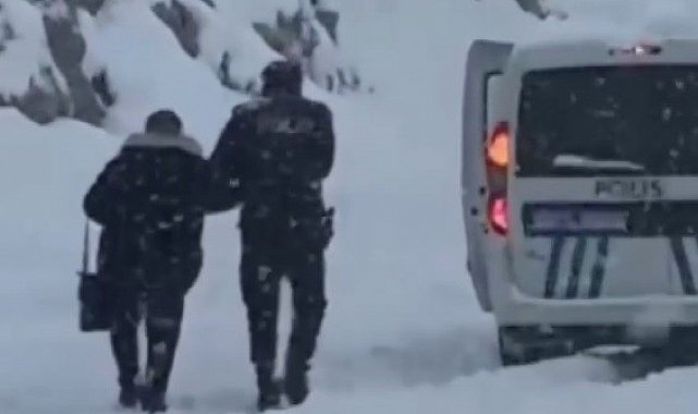 Erzincan'ın Kemaliye ilçesinde yoğun kar nedeniyle yolda kalan yolcu otobüsündeki vatandaşların yardımına polise ekipleri yetişti.