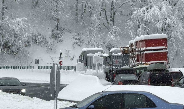 İstanbul'dan Hatay'a köprü ayağı getirmek için 2 gün önce yola çıkan tır, Bolu Dağı'nda etkili olan kar yağışında rampa çıkamayınca yolda kaldı. Kontrollü bir şekilde boş alana alınan tır için yolların açılmasının ardından kurtarma çalışması başlatıldı. Tek çekici ile kaldığı yerden çıkarılamayan köprü ayağı yüklü tır, 2 çekici ile birlikte bulunduğu yerden çıkarılarak Hatay'a gönderildi. O anlar ise havadan görüntülendi.
