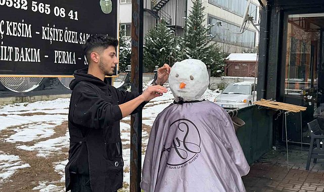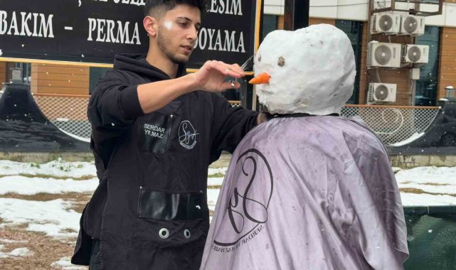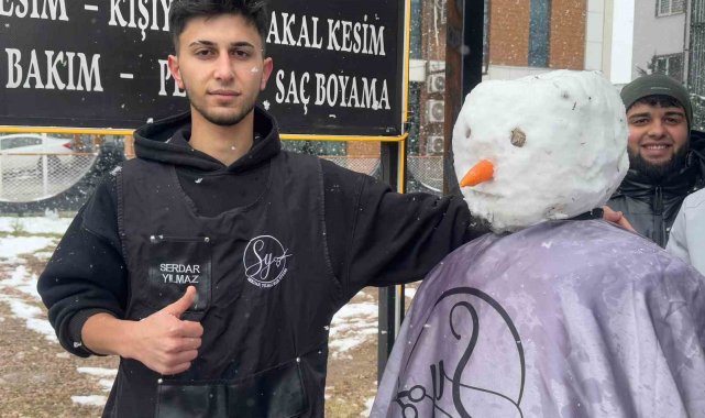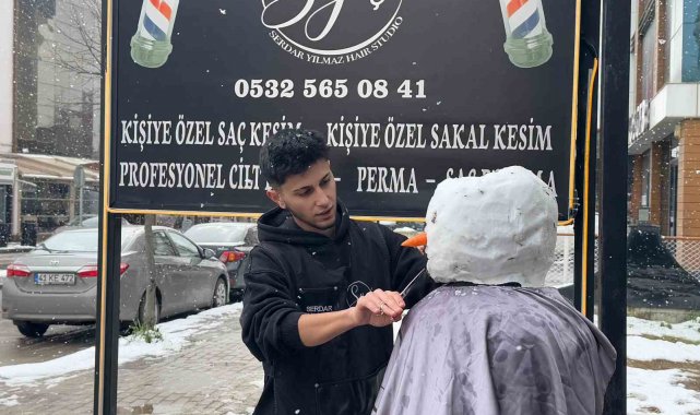Yenişehir Mahallesi'nde berber dükkanı işleten Rojat Atabay isimli vatandaş, sakal eklediği kardan adamı tıraş etti. Eline aldığı makasla kardan adamın sakalına şekil veren Atabay, görenleri de hayrete düşürdü. Kardan adam tıraşı ilginç anlara sebep oldu.