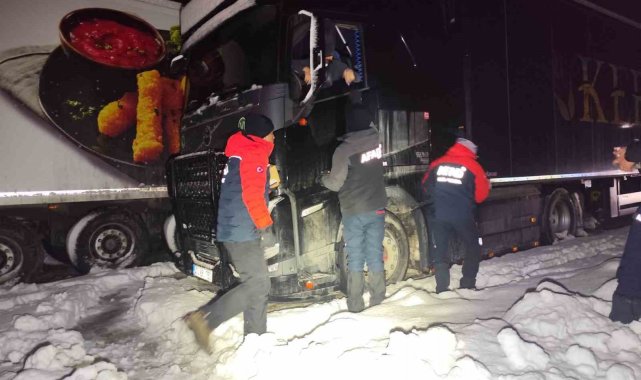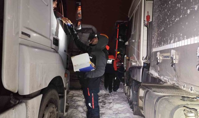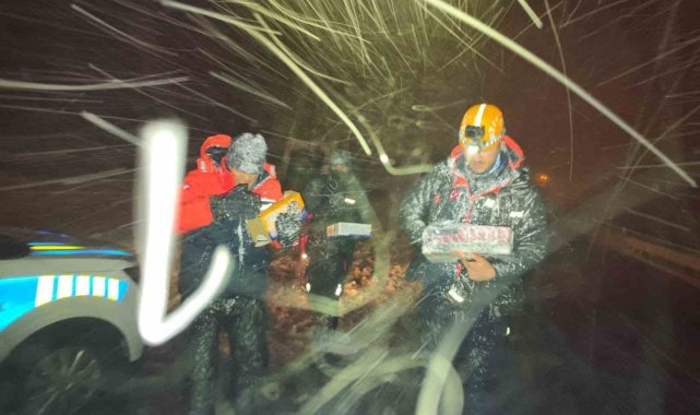 Van genelinde etkili olan yoğun kar yağışı ve olumsuz hava şartları nedeniyle yollarda mahsur kalan vatandaşlara kumanya desteği yapıldı.