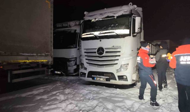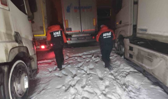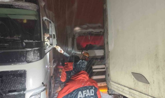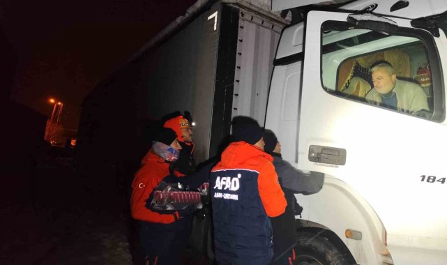 Van genelinde etkili olan yoğun kar yağışı ve olumsuz hava şartları nedeniyle yollarda mahsur kalan vatandaşlara yönelik yardım çalışmalar, Van Afet ve Acil Durum (AFAD) İl Müdürlüğü koordinasyonunda aralıksız devam ediyor. Yoğun kar yağışı ve tipi nedeniyle ulaşımın aksadığı güzergâhlarda mahsur kalan araçlarda bulunan vatandaşlara, AFAD arama kurtarma ekipleri ile Hayrat Arama Kurtarma ekibi tarafından gıda ve sıcak içecekten oluşan kumanya yardımı ulaştırıldı. Vatandaşların mağduriyet yaşamaması ve temel ihtiyaçlarının karşılanması amacıyla sahada görev yapan ekipler, ilgili kurumlarla koordineli şekilde çalışmalarını sürdürüyor. AFAD koordinesinde; emniyet, jandarma, karayolları, Kızılay, belediye ekipleri ve sivil toplum kuruluşlarının iş birliği içerisinde yürütülen çalışmalarda, vatandaşların can güvenliği öncelikli tutuldu. Olumsuz hava şartlarının etkisini sürdürmesi nedeniyle ekipler 7-24 görevinin başında.