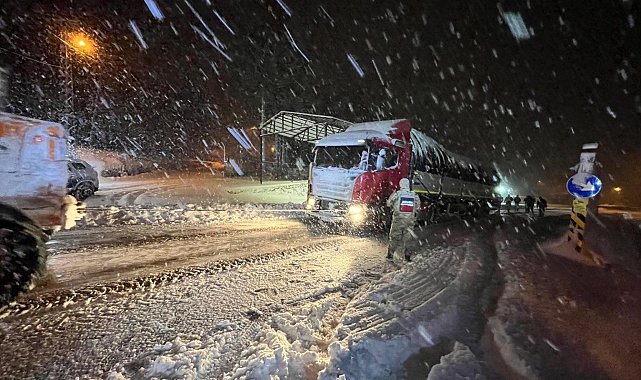 Kardan dolayı yolda kalan öğrencileri jandarma misafir etti