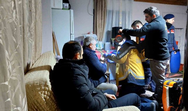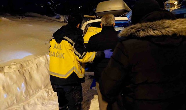 Kardan yolu kapanan köydeki yaralıya ulaşmak için zamanla yarıştılar