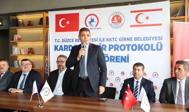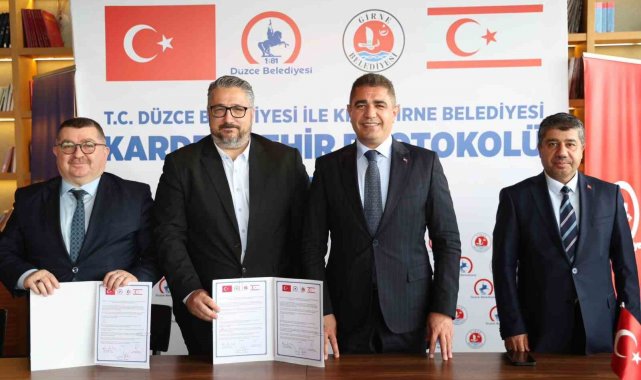 Düzce Belediye Başkanı Dr. Faruk Özlü'nün önerisi ile Belediye Meclisi'nde görüşülerek karara bağlanan "Girne ile Kardeş Şehir İlanı" Girne'den Düzce'ye gelen heyetin de katılımıyla düzenlenen protokol imza töreni ile resmiyet kazandı. Protokol kapsamında iki şehir arasında tarım, turizm ve sanayi alanlarında ortak projeler üretilerek uygulanacak.