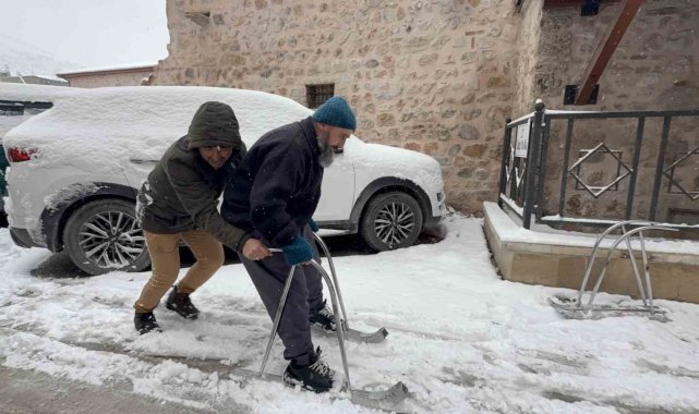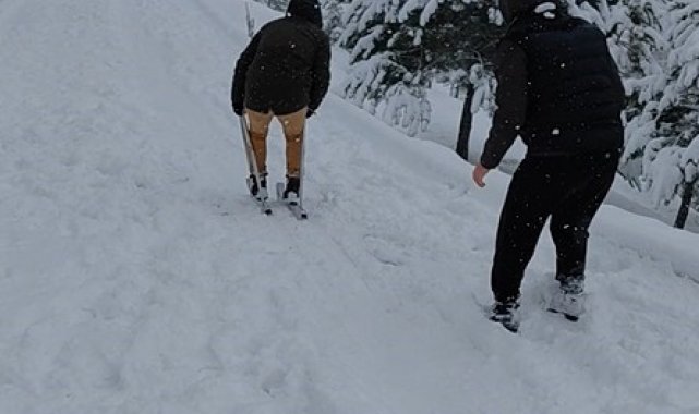 Kar yağışını fırsata çeviren Sönmez kardeşler, yaptıkları ilginç kayak takımlarını ayakkabılarına sabitleyerek kaydı. Kimi zaman birbirlerine destek olarak kayan kardeşler, çocukluk hatıralarını yeniden yaşadı.
