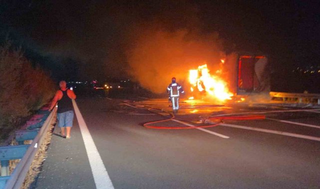 Olay, gece yarısından hemen sonra meydana geldi. Edinilen bilgiye göre; Gebze Orhangazi İzmir otoyolunda Bursa istikametine seyir halinde olan, Ramazan Altıntop yönetimindeki kargo kamyonu bilinmeyen bir nedenle alev aldı. İhbar üzerine otoyola itfaiye ekipleri yönlendirildi. Orhangazi çıkışı yakınlarındaki olayda alevler kısa sürede tüm kamyonu sardı. Rüzgarında etkili olduğu bölgede söndürme çalışmaları devam ediyor.