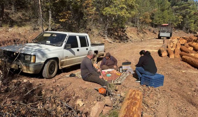 Mersin'den Antalya'ya gelip Toroslar 'da ağaç kesimi yapıyorlar. 40 yıllık meslek geleneğini sürdürüyorlar.