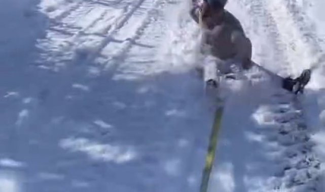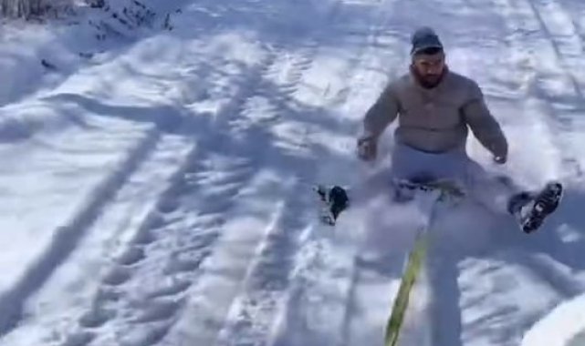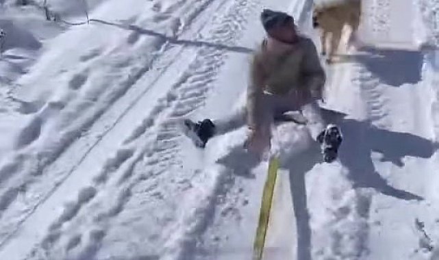 Birlik Mahallesi'nde traktörün arkasına bağladığı kızakla beyaz örtünün tadını çıkartan kişiyi köpek kovaladı. Yaşanan keyifli anlar ve köpeğin kovalaması ise saniye saniye cep telefonu kamerasına kaydedildi. Görüntülerde, bir kişinin traktörün arkasında bağladığı iple kayması, köpeğin adamın peşinden koşarak saldırmaya çalışması ve o anları kayda alan kişinin gülmesi yer alıyor.