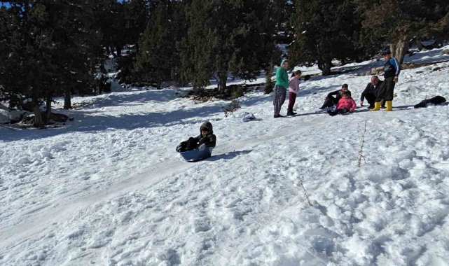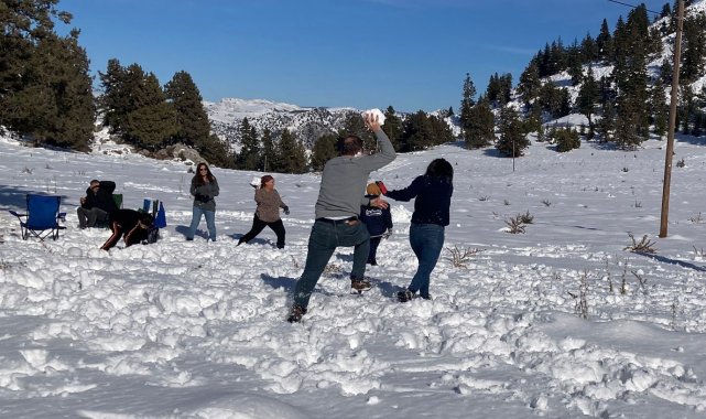 Sömestir tatilini fırsat bilerek çocuklarla Adana'dan Mersin'e geldiklerini belirten Fatma Aksu, "Kar görmeye geldik. Erdemli'nin yükseklerinde çok güzel gezilecek yerler keşfettik. Çocuklarla çok eğlendik, burası çok güzel" dedi.