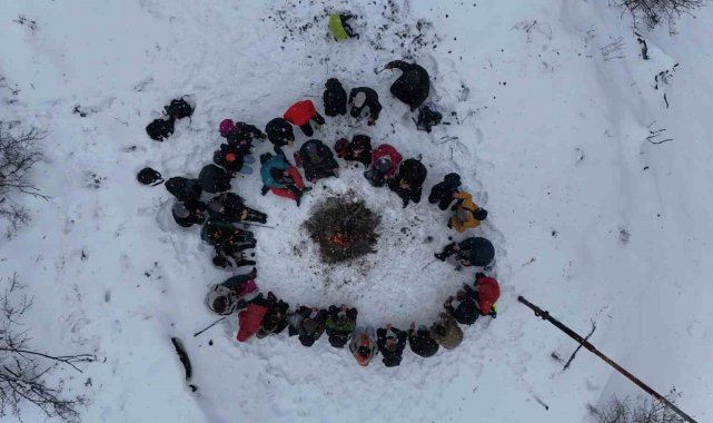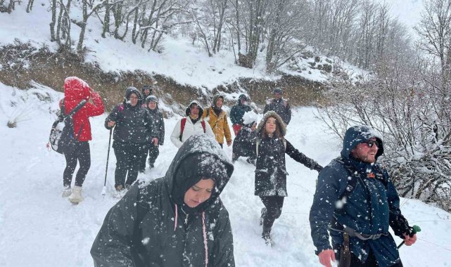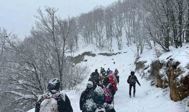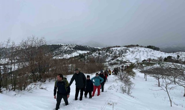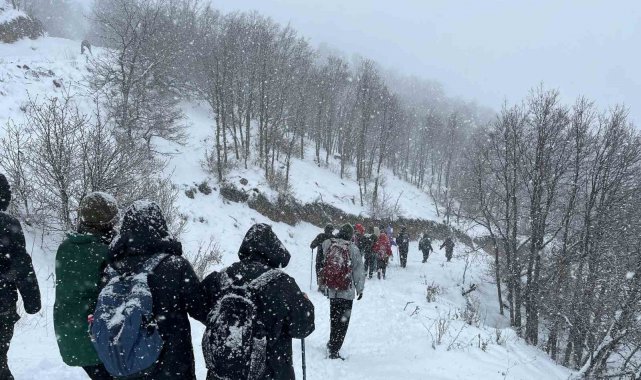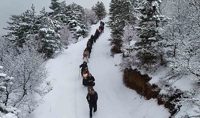 Çorum'un Oğuzlar ilçesinde bir araya gelen doğaseverler, beyaz örtüyle kaplanan doğanın tadını yürüyüş yaparak çıkardı.