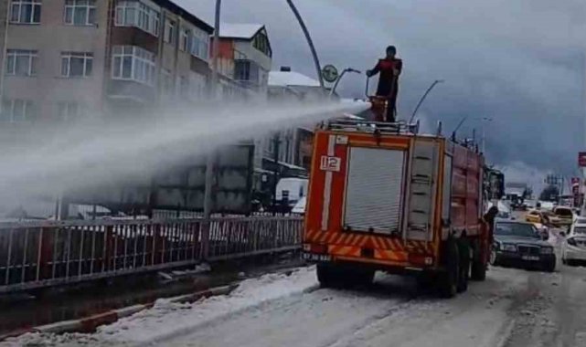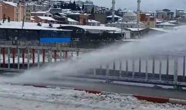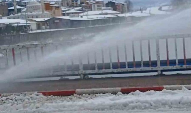 Alaplı Belediyesi ekipleri, buzlanmayla mücadele kapsamında tuz dökmek yerine denizden çekilen suyu itfaiye araçlarıyla cadde ve sokaklara püskürterek temizlik çalışması yaptı. Özellikle rampalı bölgelerde uygulanan yöntemle kar ve buzun kısa sürede eritildiği belirtildi.
