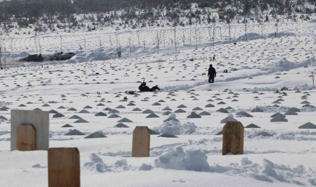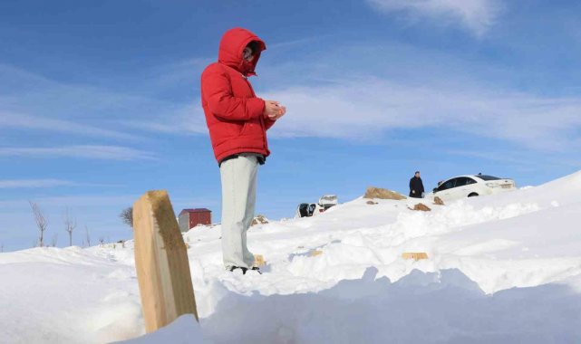 Karla kaplanan mezarda yakınlarının kabirlerini bulmakta zorlandılar