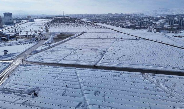 Sivas'ta günlerdir aralıklarla etkisini sürdüren yoğun kar yağışı hayatı olumsuz etkilemeye devam ediyor. Kent genelinde birçok nokta beyaz örtüyle kaplanırken, şehrin en büyük mezarlıklarından biri olan Yukarı Tekke Mezarlığı da kar altında kaldı. Yaklaşık 100 bin mezarın bulunduğu mezarlık alanı tamamen beyaza bürünürken, mezar taşları da kara gömüldü. Bazı vatandaşlar mezar taşları karlı örtüldüğü için yakınlarının mezarlarını bulmakta zorlandı.