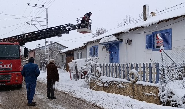 Olay, Bilecik'in Pazaryeri'ne bağlı Gümüşdere köyünde meydana geldi. Yoğun kar yağışının yaşandığı köyde bir evin çatısına çıkan yavru köpek mahsur kaldı. Durumu fark eden duyarlı köy sakinleri, kendi imkânlarıyla köpeği çatıdan indiremeyince vakit kaybetmeden 112 Acil Çağrı Merkezi'ni arayarak yardım talebinde bulundu. İhbar üzerine kısa sürede olay yerine ulaşan Pazaryeri Belediyesine bağlı itfaiye ekipleri, karla kaplı ve kaygan çatıya merdivenle çıkarak titiz bir çalışma yürüttü. Zorlu kış şartlarına rağmen büyük bir dikkatle hareket eden ekipler, minik köpeği sağ salim çatıdan indirerek güvenli alana aldı.