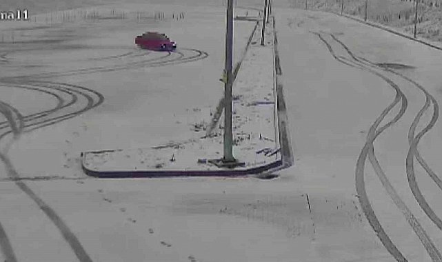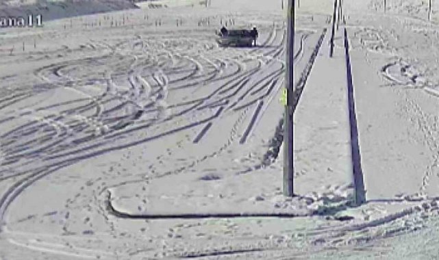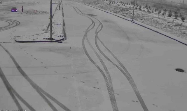 Karla kaplı sınav parkurunda drift yaptılar, kameraya yakalandılar