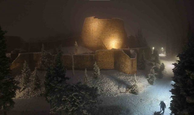 İstanbul'da etkili olan kar yağışı, Anadolu Yakası'nın yüksek kesimlerinde ve özellikle Sultanbeyli'deki tarihi Aydos Kalesi çevresinde adeta mest eden görüntüler oluşturdu.