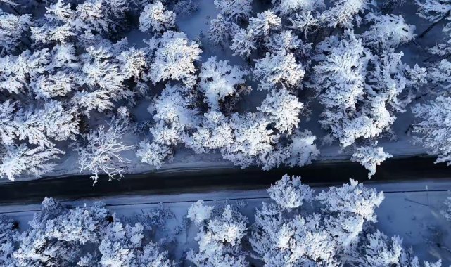 Ağaçların dallarındaki karlar zaman zaman güneş ışığının da yansımasıyla doğanın gücü ve güzelliğini hatırlattı.