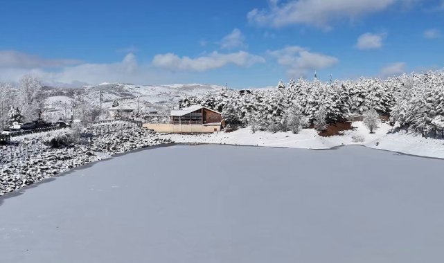 Dört mevsim ayrı güzelliğe bürünen Çamlık'taki kar örtüsü, eşsiz manzarasıyla görenleri adeta büyüledi. Göletin, ağaçların üzerindeki kar görüntüleri doğanın en sakinleştirici ve huzur verici anlarını gözler önüne serdi.