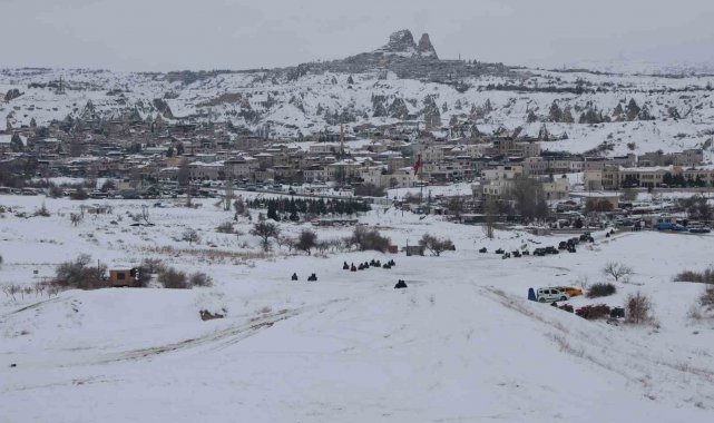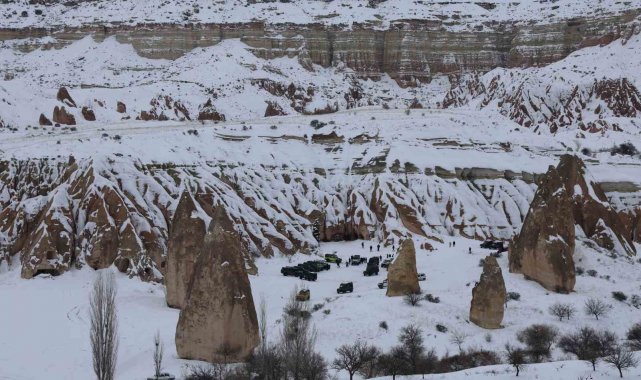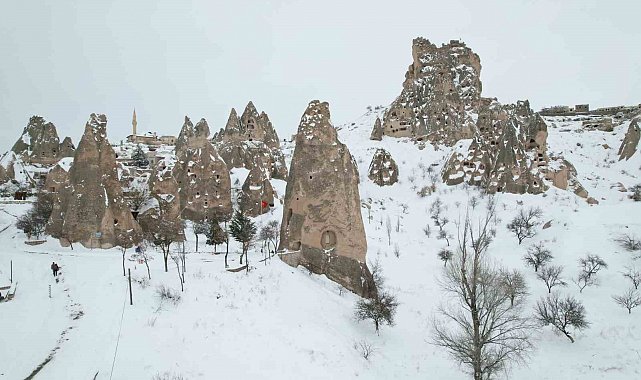 Yılda yaklaşık 4 milyondan fazla yerli ve yabancı turistin ziyaret ettiği Kapadokya bölgesi, 4 mevsim ayrı güzelliğe bürünüyor. Kışın yağan karla birlikte peribacaları adeta gelinlik giymiş gibi bembeyaz bir örtüyle kaplanıyor.