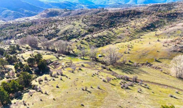 Kastamonu'nun İhsangazi ilçesinde karların erimesiyle birlikte yeşil örtüyle kaplanmaya başlayan yaylalar havadan görüntülendi.