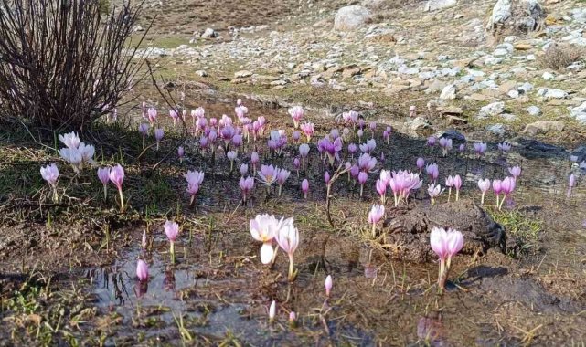 Karların erimesiyle çıkan kardelenler görsel şölen sundu