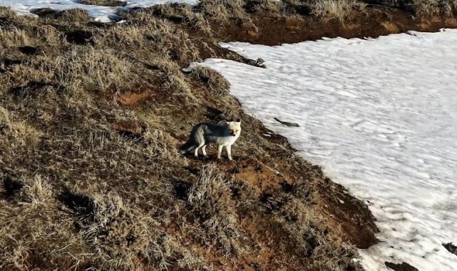 Kış mevsiminin uzun ve çetin geçtiği Bitlis ile ilçelerinde, yaban hayvanları da kar örtüsü altında yiyecek bulmakta güçlük çekiyor. Ahlat ilçesine bağlı yüksek rakımlı köylerde ve kırsal alanlarda etkisini sürdüren kar yağışı, doğadaki yaşamı da zorlaştırıyor. Ahlat ilçesine bağlı Ovakışla Beldesi ile Dilburnu köyü yolunda dronla görüntü alan içerik üreticisi Ercan Baş tarafından, karlı arazide yiyecek arayan bir tilki fark edildi. Kar örtüsü üzerinde dikkatli adımlarla ilerleyen tilki, bir süre yiyecek aradı. Havada uçan dronun kendisini takip ettiğini fark eden tilki ise bir an duraksayarak tedirgin ve meraklı bakışlarla dronu izledi. Bir süre çevresini kontrol eden tilki, daha sonra hızla bölgeden uzaklaştı.