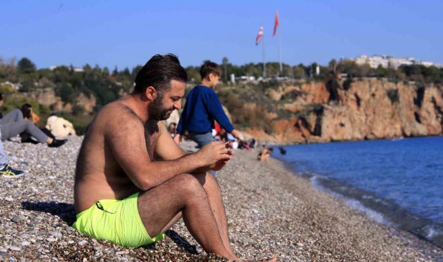2025 yılının sona ermesine sayılı günler kala Türkiye'de birçok il soğuk ve sert kış şartları altındayken turizmin başkenti Antalya'da yazdan kalma günler yaşanmaya devam ediyor. Meteoroloji Bölge Müdürlüğü verilerine göre Antalya'da hava sıcaklığı 19, deniz suyu sıcaklığı ise 20 derece dolaylarında ölçüldü. Aralık ayının ortaları olmasında rağmen sıcak sıcak ve güneşli havayı fırsat bilen kent sakinleri ve yabancı turistler Konyaaltı Sahili'ni doldurdu. Hafta sonunu fırsat bilerek Konyaaltı Sahiline gelen bazı vatandaşlar denize girerken, kimileri ise aileleri ve arkadaşları ile birlikte kumsal ve yeşillik alanlarda oturmayı tercih etti.