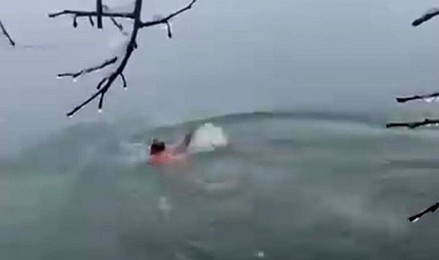Diyarbakır'da bir vatandaş, dün yoğun kar yağışı sırasında Dicle Nehri'nin soğuk suyuna daldı. Vatandaş, uzun süre kulaç atarak nehirde açıldı. O anlar cep telefonuyla kayda alındı.
