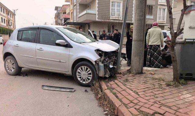 Kaza, saat 15.00 sıralarında İnegöl ilçesi Kemalpaşa Mahallesi Paşaören ile Hicran sokağın kesiştiği kontrolsüz kavşakta meydana geldi. Edinilen bilgiye göre, Paşaören sokaktan çıkan sürücü Ayşe B. (33) yönetimindeki 16 KEN 82 plakalı otomobil, Hicran sokakta seyreden sürücü Mustafa K. (36) yönetimindeki 34 VM 5478 plakalı otomobile yandan çarptı. Çarpmanın etkisiyle savrulan 16 KEN 82 beton direğe çarparak durabildi.