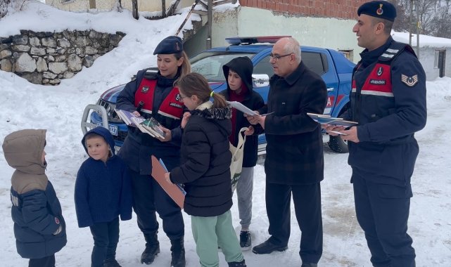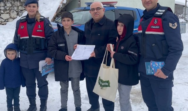 Tokat'ın Pazar ilçesi Ovacık köyünde karla kapanan yol nedeniyle okula gidemeyen 9 öğrencinin karneleri, jandarma ekiplerince evlerine ulaştırıldı.