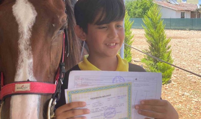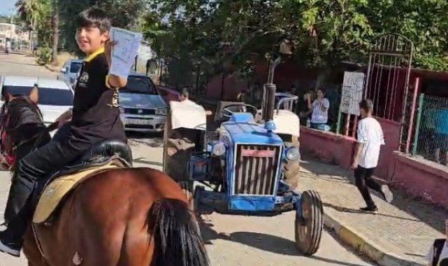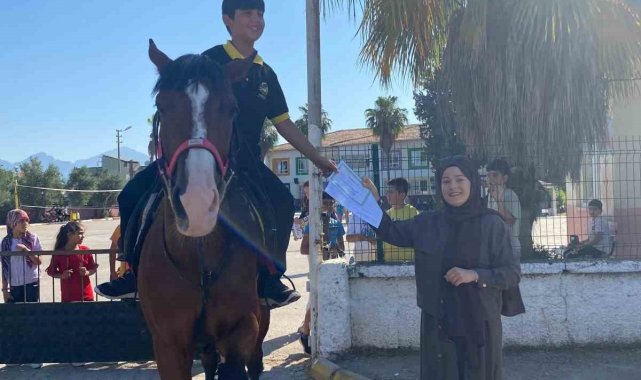 Antalya'nın Serik ilçesinde 6. Sınıf öğrencisi karnesini almak için okula atı ile geldi. Karnesini de atın üzerinde alan atlı öğrenciyi görenler gözlerine inanamadı.