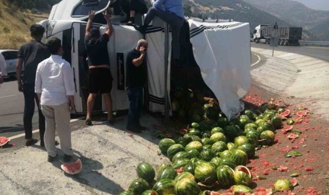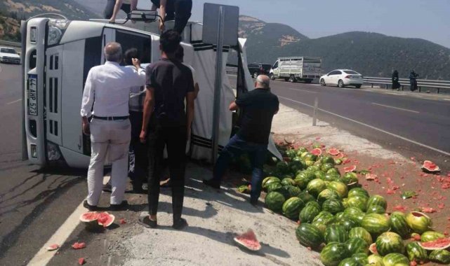 Karpuz yüklü kamyon devrildi: 1 yaralı