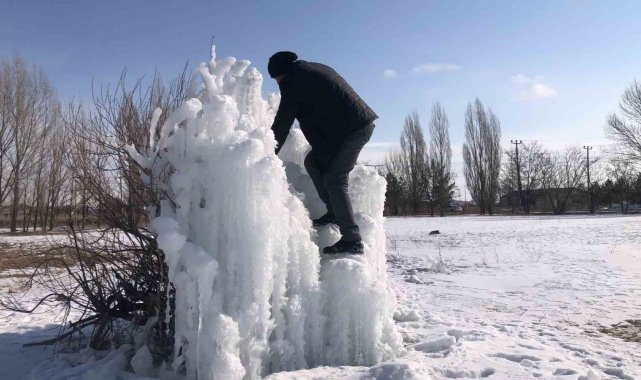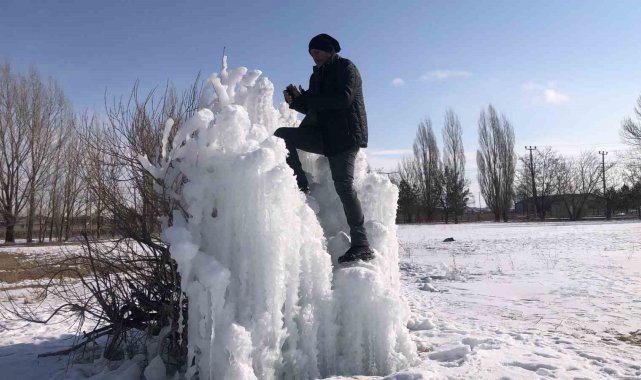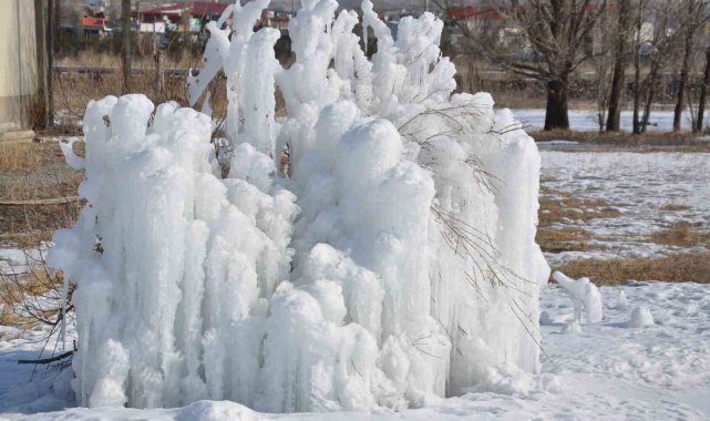 Bahar mevsiminin başlamasına rağmen Kars'ta kış etkisini sürdürüyor. Hava sıcaklıklarının gece sıfırın altında 14 dereceye düştüğü kentte şelale dondu, ağaç buzdan heykele döndü.