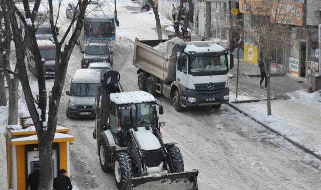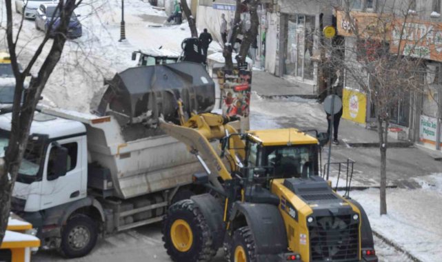 Öte yandan belediye ekiplerince caddelerden iş makineleriyle toplanan kar kütleleri, kamyonlara yüklenerek şehir dışındaki boş alanlara taşınıyor.