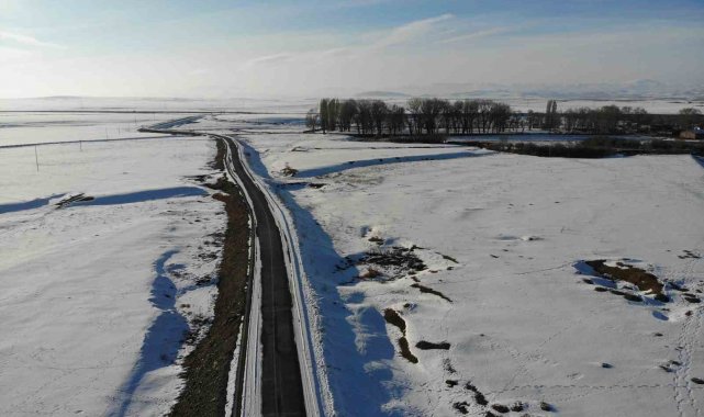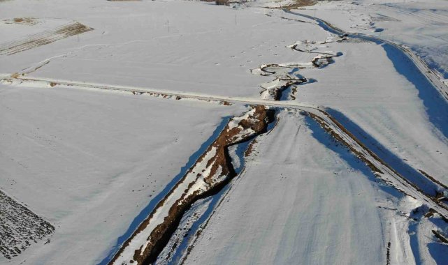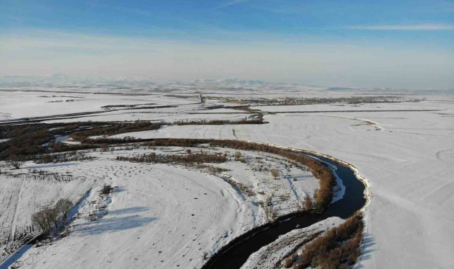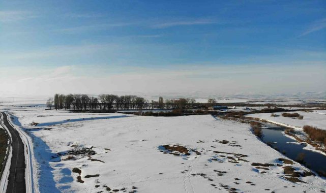 Öte yandan soğuk havanın etkili olduğu Kars'ta yağan kar ile birlikte tarım arazileri yeniden beyaza büründü. Beyaza bürünen tarım arazileri havadan görüntülendi.