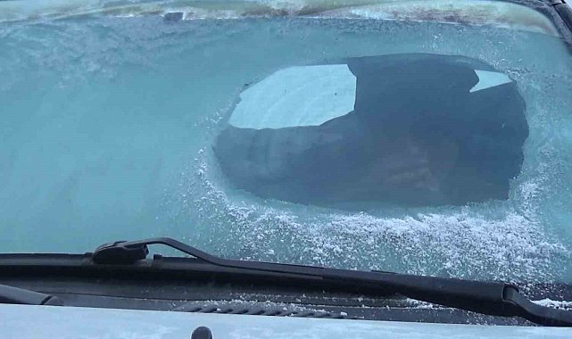 Kars eksi 13'ü gördü: Araç camları buz tuttu