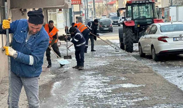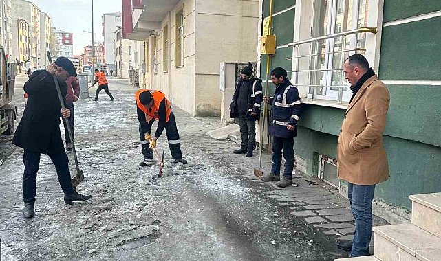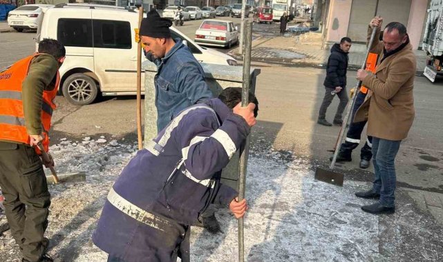 Kars'ın kaldırımların buzu kırılıyor
